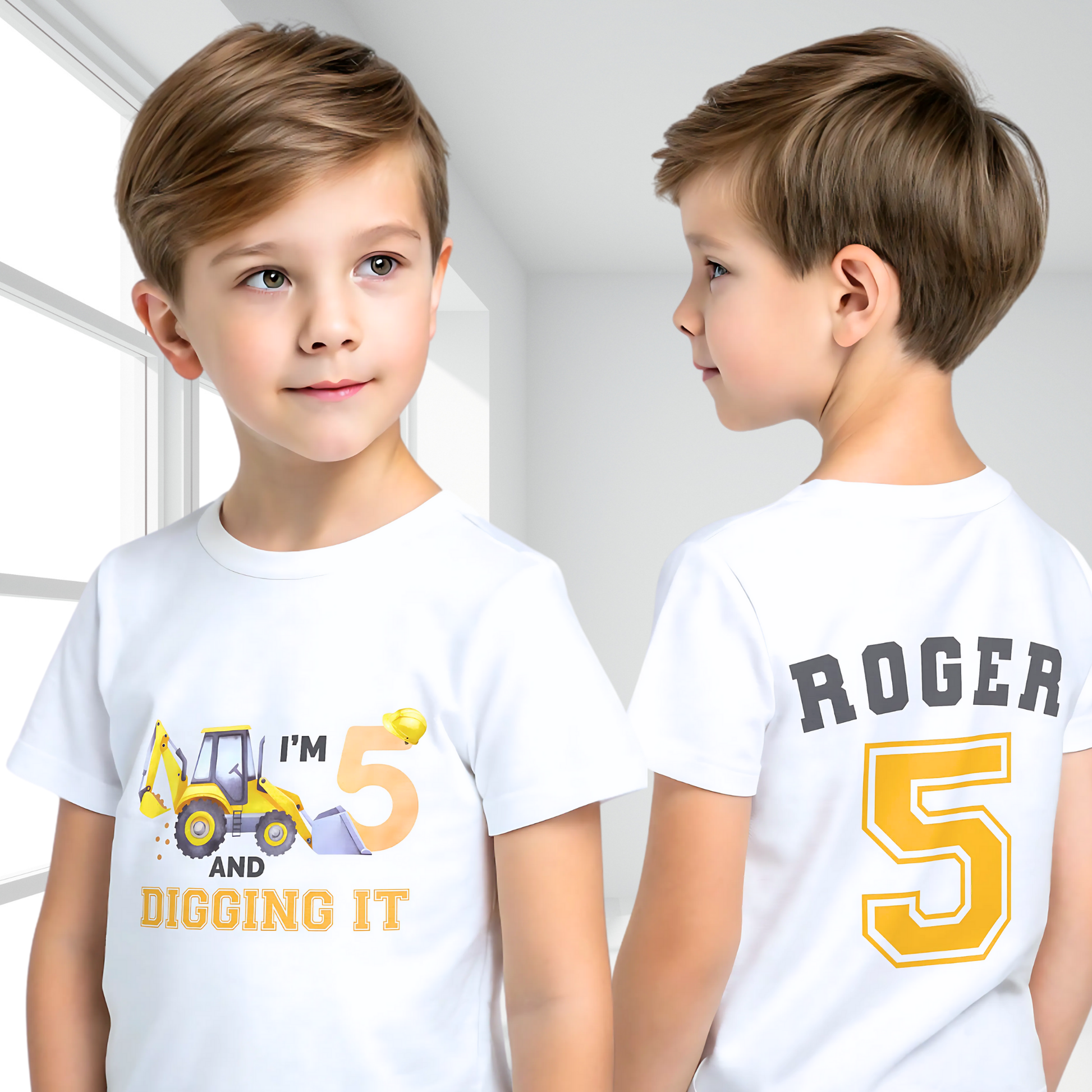 Get ready to celebrate your little one’s special day with our adorable Boys Personalised Construction Digger Birthday T-Shirt! This delightful digger t-shirt features a fun and playful design with the phrase “I'm Digging It,” making it perfect for any toddler who loves construction vehicles. Crafted from soft, breathable fabric, our digger t-shirt ensures comfort as your child plays and explores. You can personalise this charming toddler excavator shirt with your child's name to make the birthday celebration even more memorable. Ideal for birthday parties or everyday wear, this custom digger t-shirt is sure to be a hit with any young construction enthusiast!