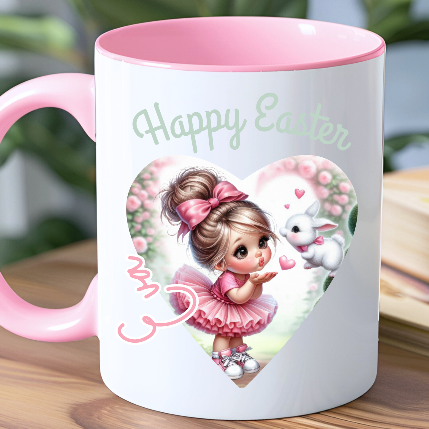 Personalised Girls' Blonde Messy Bun Easter Mug, Girls' Custom Easter Gift