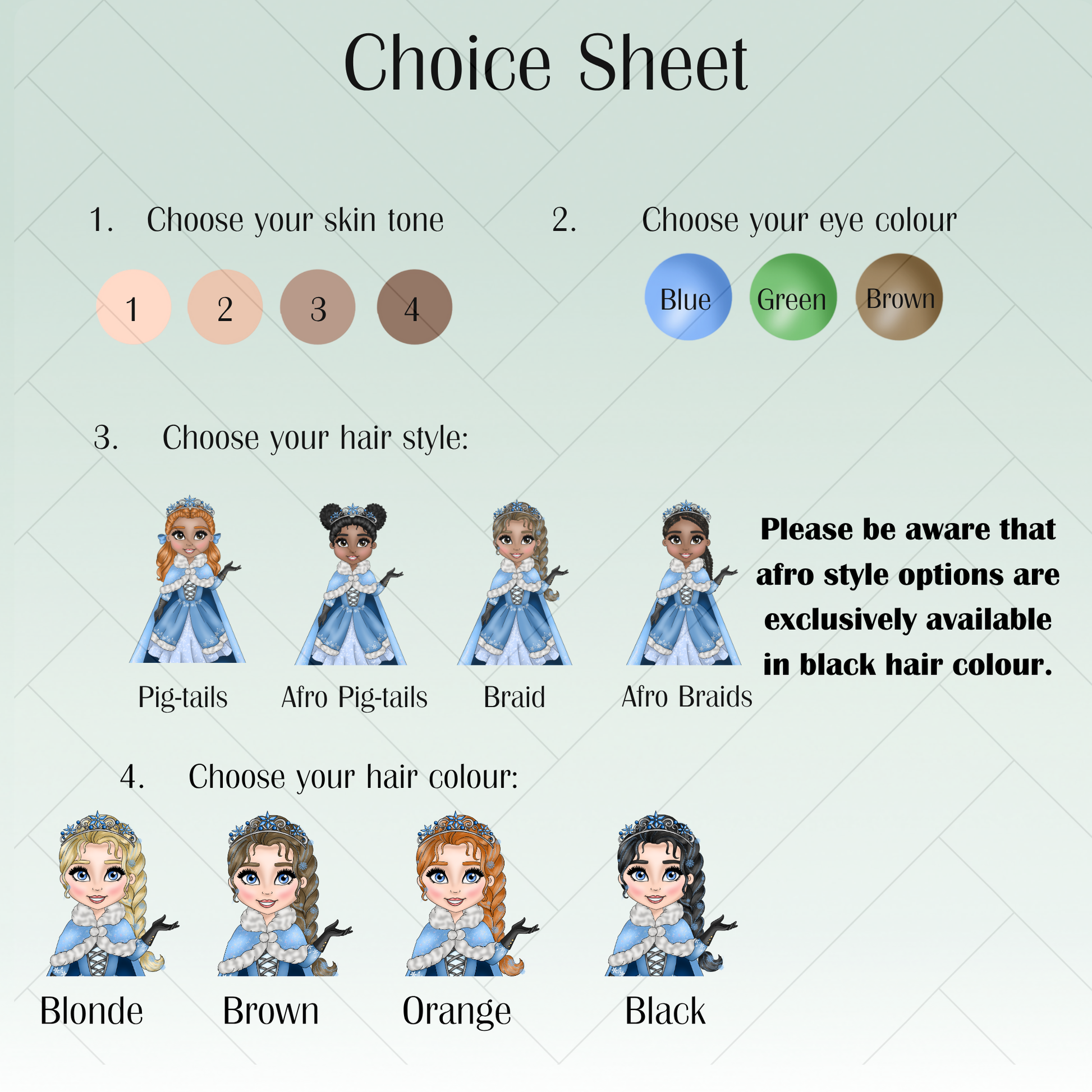 Personalised Girls Princess Birthday Pyjamas - Customise the Blue Snow Princess with your Child's Features